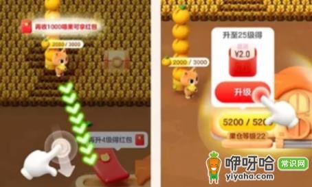 控制猫猫靠近果仓,点击升级按钮升级