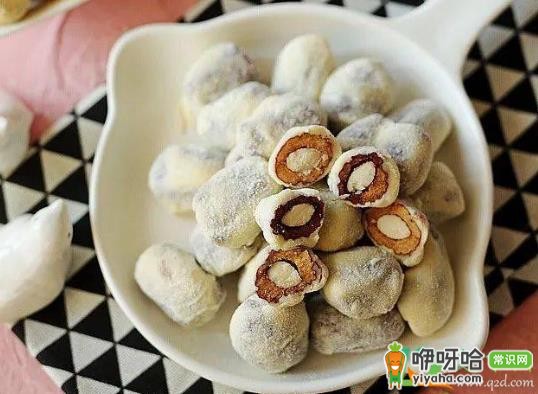 无夹心:有点像糯米皮,有浓郁的牛奶和枣子的香味,但比杏仁的甜。