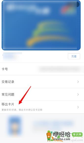 在公交卡详情界面,点击下方的移出卡片。