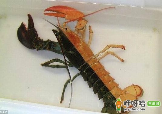 据英国每日邮报报道,目前,美国马萨诸塞州一位渔民捕捞到一只外形奇特的龙虾,它的身体一半呈现橙色,一半呈现黑色。