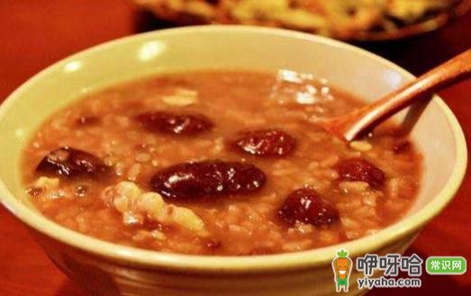 将淘洗净的糯米、大枣、莲子一同入锅加水适量,先用旺水烧开,再转用文火煮熟,待煮至浓稠时加入桂圆肉和适量冰糖,再稍煮一会儿即可食用。